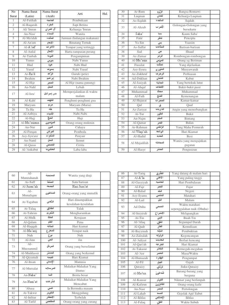Selain setiap surat memiliki nama sebagai identitas dan pembeda, ternyata banyak surat yang memiliki nama lebih dari. Nasyid nama nama surah al qur an. Urutan nama nama surat dalam al quran. Ini merupakan pendapat mayoritas ulama. Nanti mereka akan mendapat balasan terhadap apa yang telah mereka kerjakan. Ahmad zaki arrasyiq 22 june 2017. Sebagaimana mereka dari nama al aziz memeberikan nama uza, al manan dirubah dengan munah, atau dengan menambah maupun mengurangi. Sapi betina 3 ali 'imran آل عمران : Cara sangat mudah menghafal 114 nama surat dalam al quran bag. Pembukaan jumlah ayat 7 yang. Inspirasi nama dari al quran. Terdapat 114 surat di dalam al qur'an. New surat al kahfi muzammil hasballah terbaru.