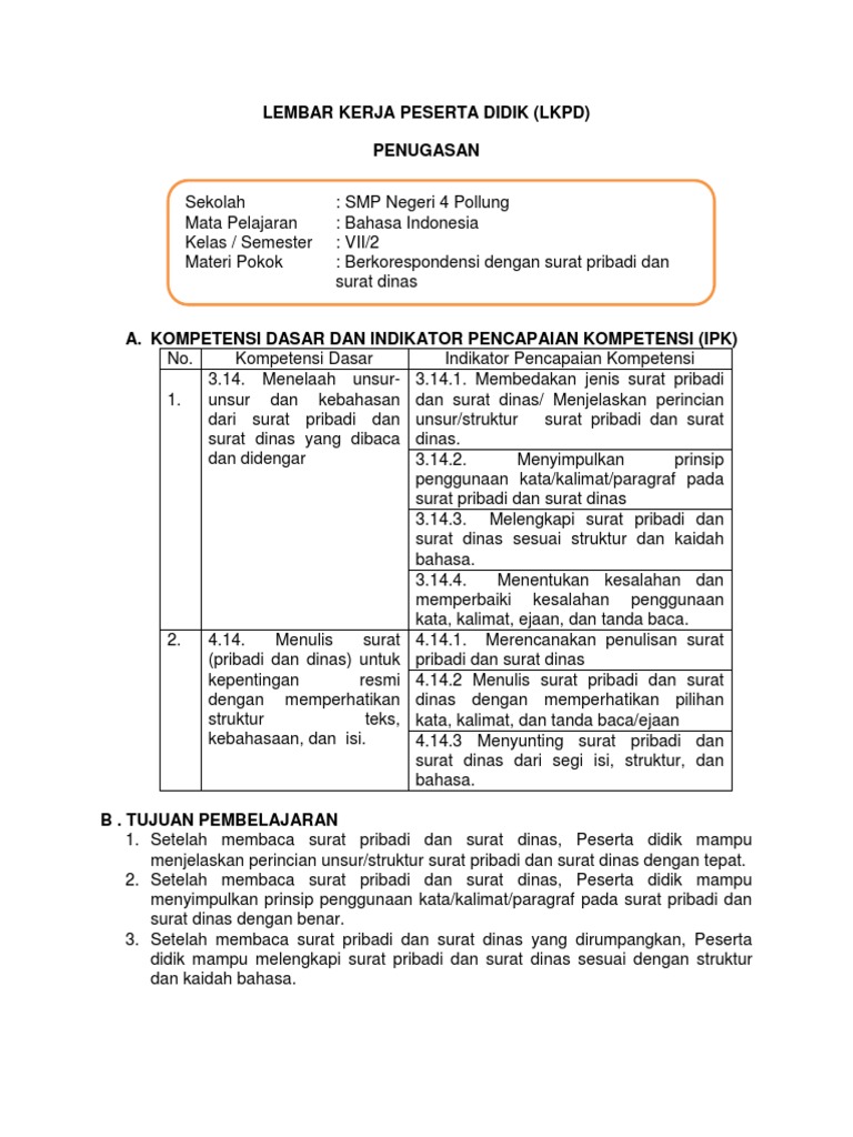 Kelas 07 Smp Bahasa Indonesia Siswa 2017 By Gallery Azzam Issuu from image.isu.pub B surat pribadi definisi surat pribadi : Sedang kesulitan pada saat menulis surat pribadi? Tidak memilik kop surat 2. Kamu lagi mencari contoh surat pribadi? Surat dinas memuat isi terkait keperluan dinas yang sifatnya resmi. Keefektifan dan kesantunan dalam berkomunikasi perlu perhatian lebih untuk menghindari salah. Contoh surat dinas pemerintah kabupaten dan universitas. Surat terbagi menjadi dua, yaitu surat pribadi dan surat dinas.